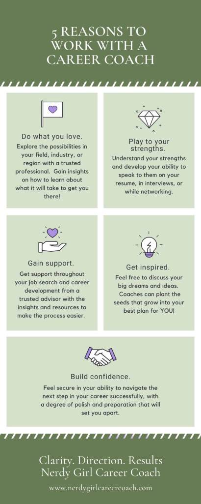 The choice to make a career change is commonly a complex decision. If you’d like to talk to someone about your career challenges, schedule a free introductory coaching session with me, I’m a certified Job and Career Transition Coach (JCTC). I’d love to support you through any of your career concerns. www.nerdygirlcareercoach.com