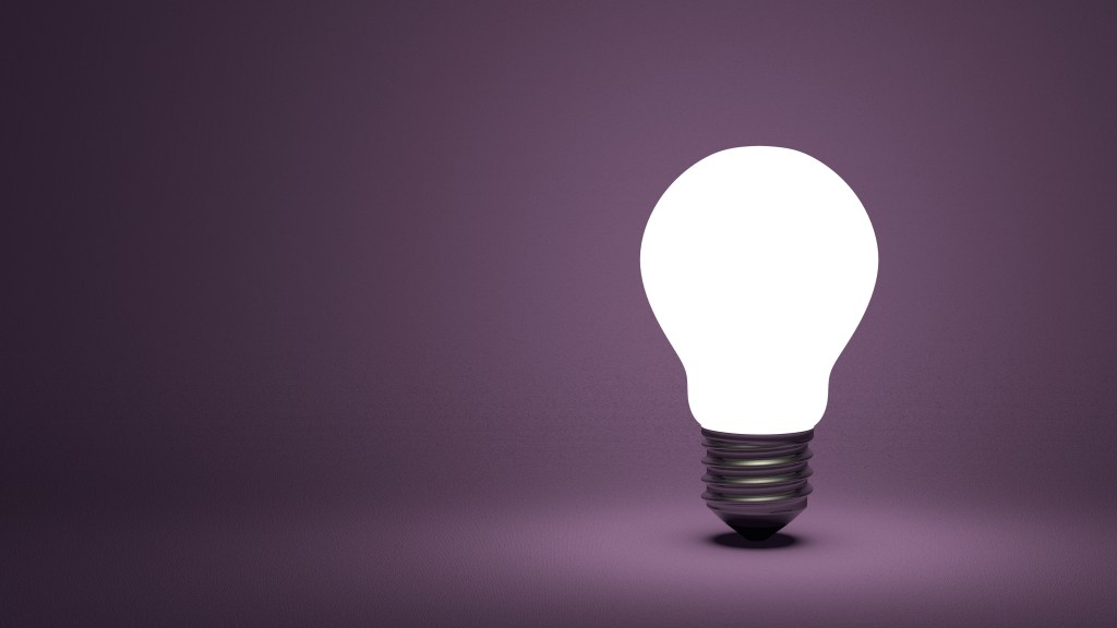 Glowing light bulb on dark violet textured background